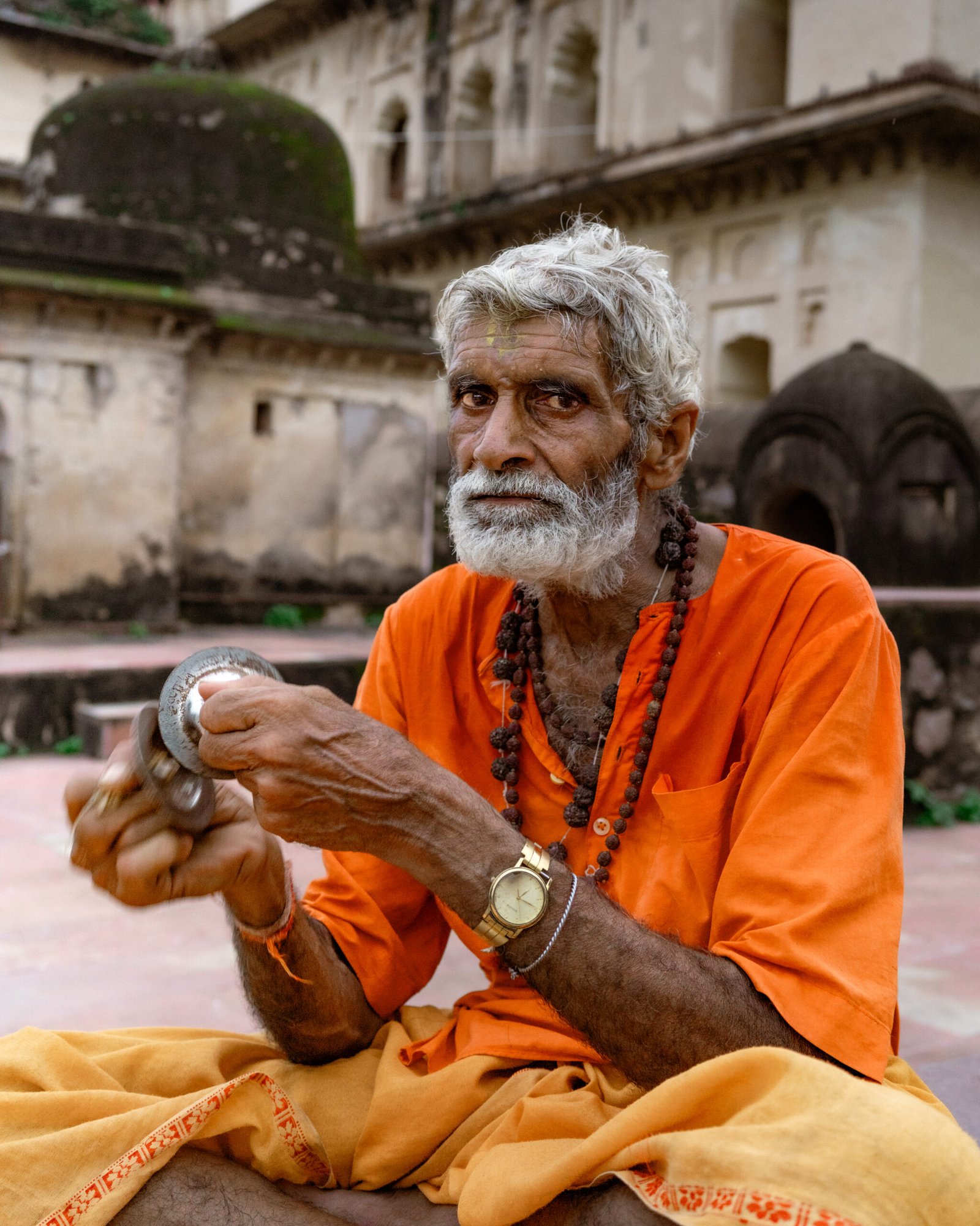 My short visit to Orchha was based on a street photography workshop. Even though I had never heard the name of this place before, the moment I stepped on its soil, I got a strong sense of familiarity. The living air was filled with laughter and smell of spices. Storefronts adorned with flowers. One could hear the devotional songs floating from far, which seemed sweeter than any rhythm. All the time I passed through the streets surrounding temples and palaces, I could feel the aching joys of devotees, the innocent mischief of children, and a strong sense of community among people. Ornamented with harmless curiosity and hopeful smiles, they felt like home.